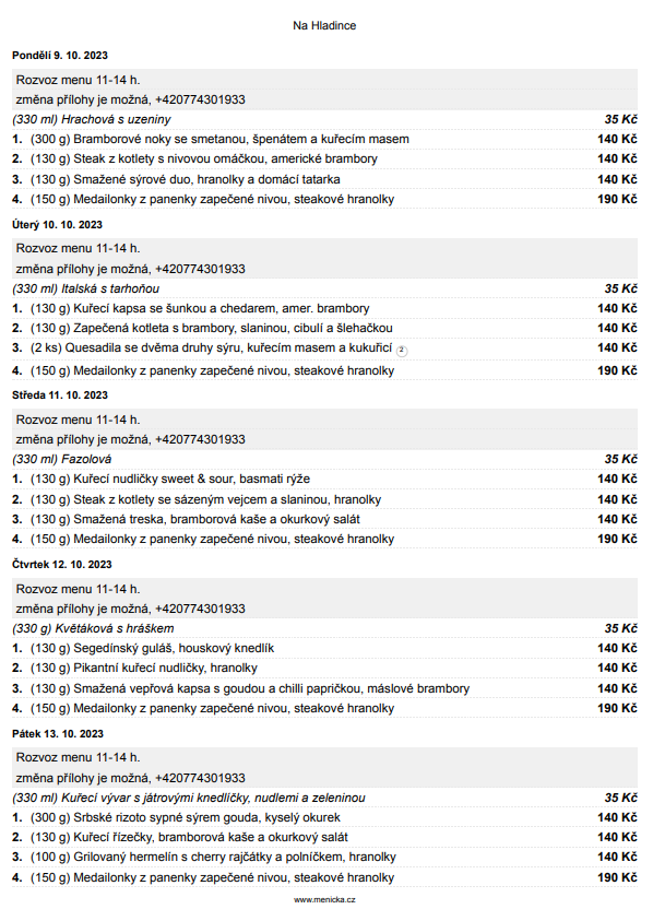 NA HLADINCE Ne-Čt 11-22 Pá-So 11-24